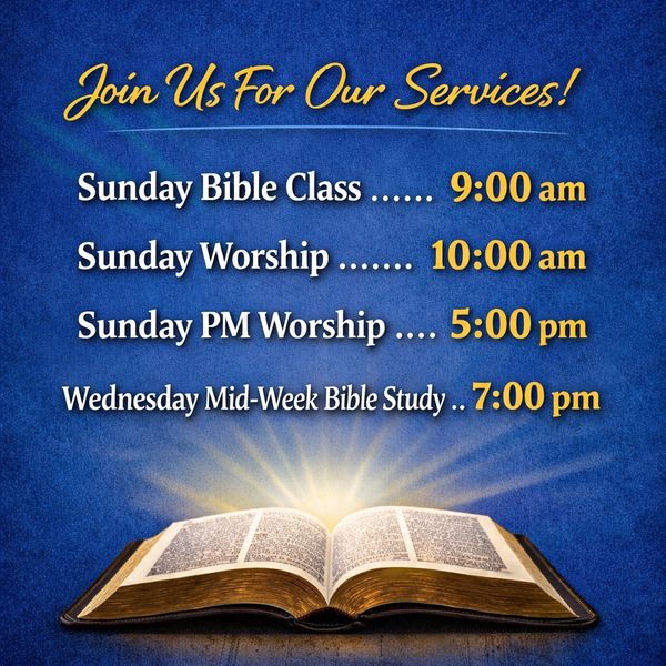We livestream several of our weekly gatherings on our YouTube channel so you can join us from anywhere. You’re invited to watch our Sunday Bible class at 9:00 a.m., our Sunday morning worship at 10:00 a.m., our Sunday evening service at 5:00 p.m., and our Wednesday Bible class and devotional at 7:00 p.m. Each stream includes Bible-based teaching, worship, and encouragement. Whether you're traveling, staying home, or exploring our church for the first time, we welcome you to join us online. You can also view past services anytime on our channel.